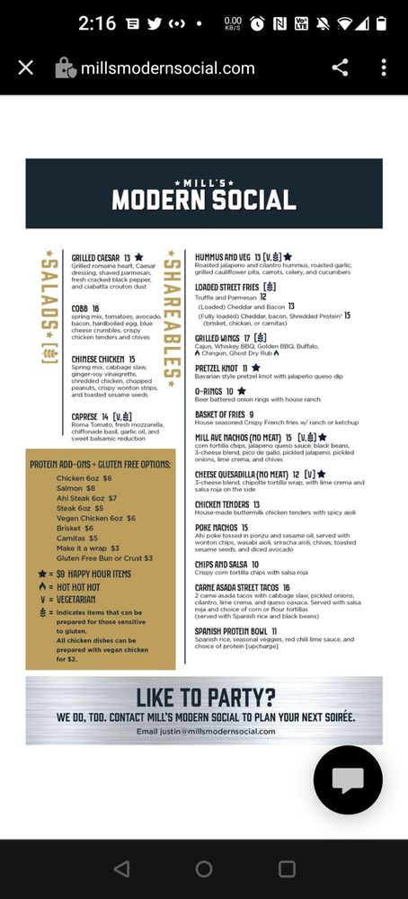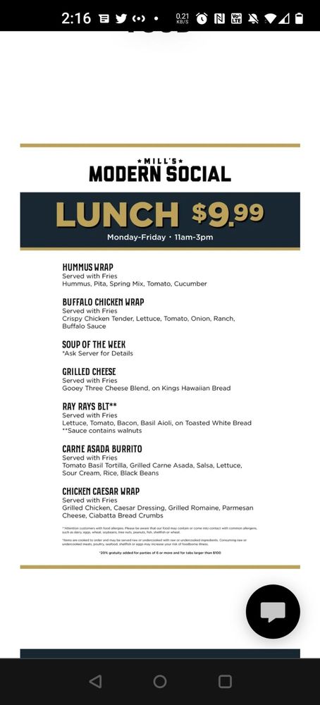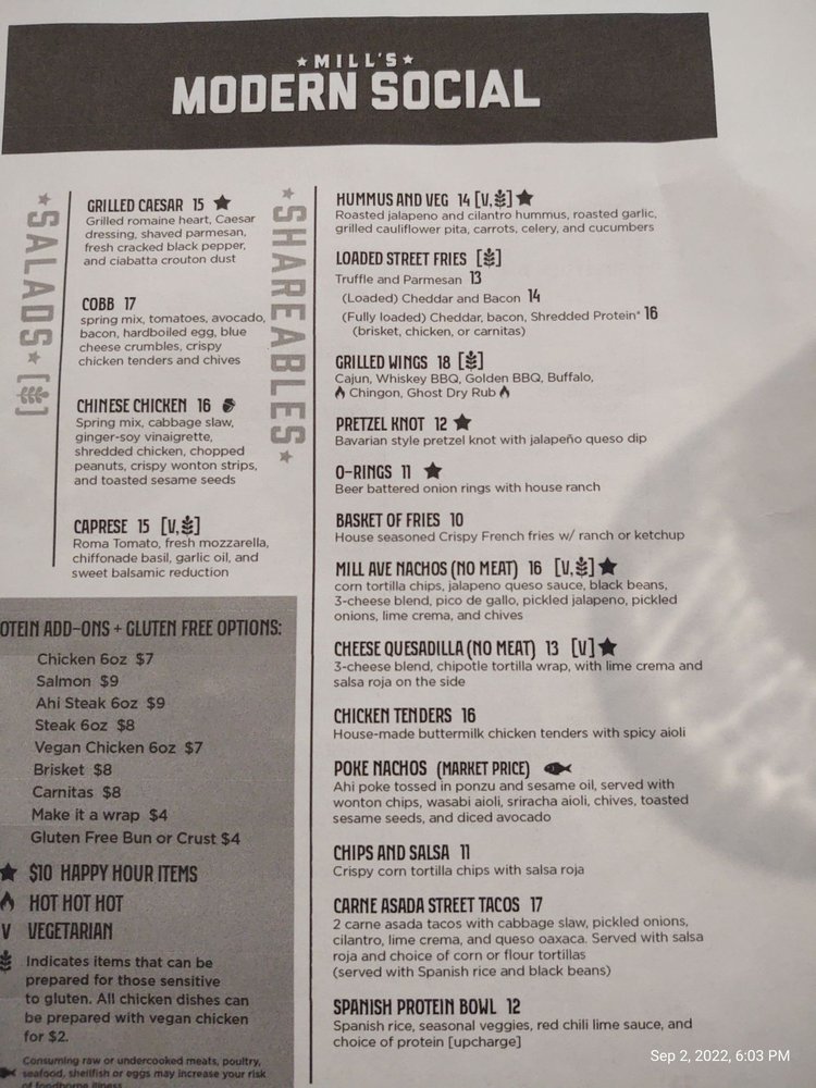 Mill's Modern Social, located in Tempe, AZ, is a trendy New American Beer Bar offering a variety of shareables, salads, and sandwiches. Customers have praised the upscale atmosphere, friendly staff, and delicious food. Standout dishes include the Basket of Fries with garlic aioli, Wings with a choice of dipping sauces, and the Ray Ray BLT Sandwich with crispy bacon and basil aioli. Additionally, the Classic Caesar Salad and House Salad have received rave reviews for their fresh ingredients and flavorful dressings. Despite some minor drawbacks such as small portion sizes and automatic gratuity charges, the overall experience at Mill's Modern Social is one of excitement and satisfaction. With a spacious interior featuring pool tables, video games, and darts, this establishment is perfect for a fun night out with friends or a casual meal. The presence of vegan options, outdoor seating, and free Wi-Fi make it a versatile choice for diners of all preferences.